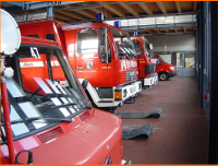 So gibt es neben der Fahrzeughalle, in der alle Einsatzfahrzeuge untergebracht sind, auch einen Umkleideraum, in dem die Einsatzkräfte Ihre Uniformen unterbringen können.